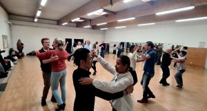 Ensuite vous devez mettre en application en situation réelle de bal ! Et donc vous devrez aller dans les soirées pour danser en libre ce que vous avez appris en cours