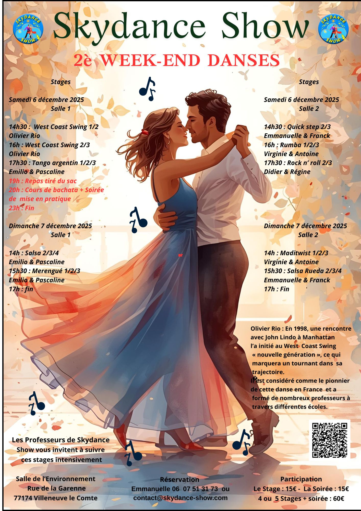 14h : Salsa 2/3/4 – Emilio & Pascaline 15h30 : Merengué 1/2/3 – Emilio & Pascaline